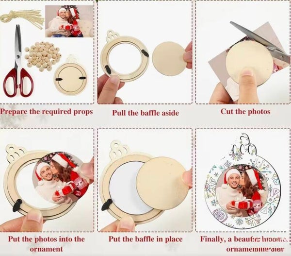 3 Hanging ornament Christmas Kit - 2 picture festive ball balls and 1 candy cane